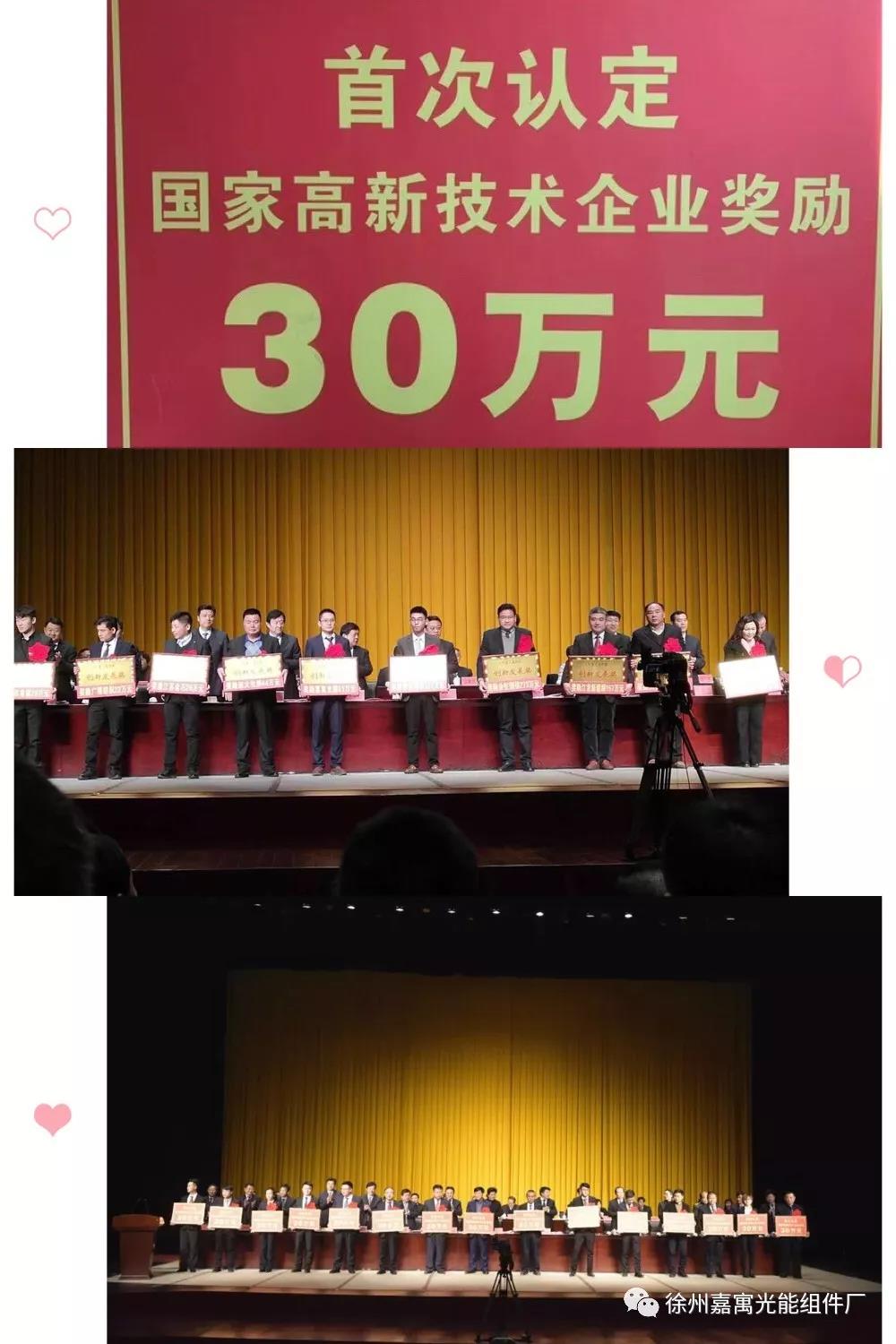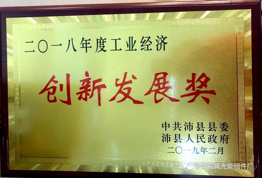 嘉寓光能科技有限公司獲得二零一八年度工業(yè)經(jīng)濟(jì)創(chuàng)新發(fā)展獎(jiǎng)及首次認(rèn)定國(guó)家高新技術(shù)企業(yè)獎(jiǎng)。